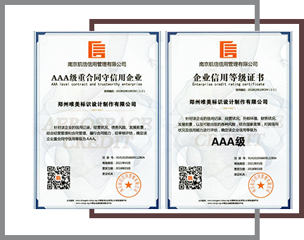 生產(chǎn)制作的每一件產(chǎn)品的原材料嚴格按照國家標準執(zhí)行,產(chǎn)品質(zhì)保最長10年;免費上門服務(wù)、免費深化標識設(shè)計方案、免費鄭州市內(nèi)送貨上門;口碑廣為流傳、70%客戶來自于老客戶轉(zhuǎn)介紹;